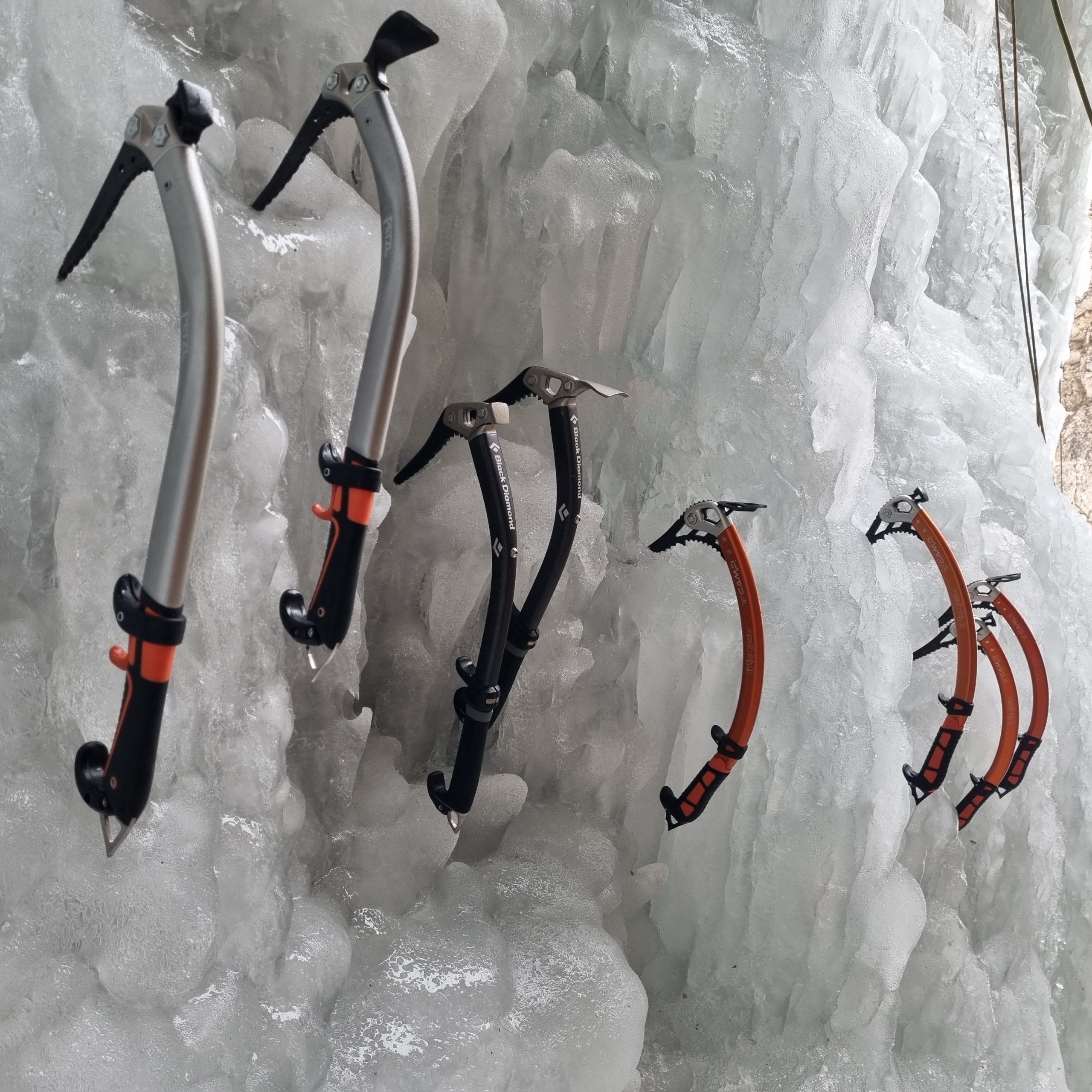 Po prihodu in pripravi opreme nam je Žiga Oražem pripravil poligon z različnim naborom cepinov. Malo nad tlemi nam je pripravil prečko, kjer smo tečajniki poizkušali pravilno postaviti noge in preprijemati različne tipe cepinov. Eden za drugim smo se podali v led in že kakšen meter nad tlemi zabijali dereze v led. Po končani prvi vaji nas je Žiga seznanil s pravili ter pravilnimi postopki zavijanja in izvijanja lednih vijakov, kar smo tudi praktično preizkusili.